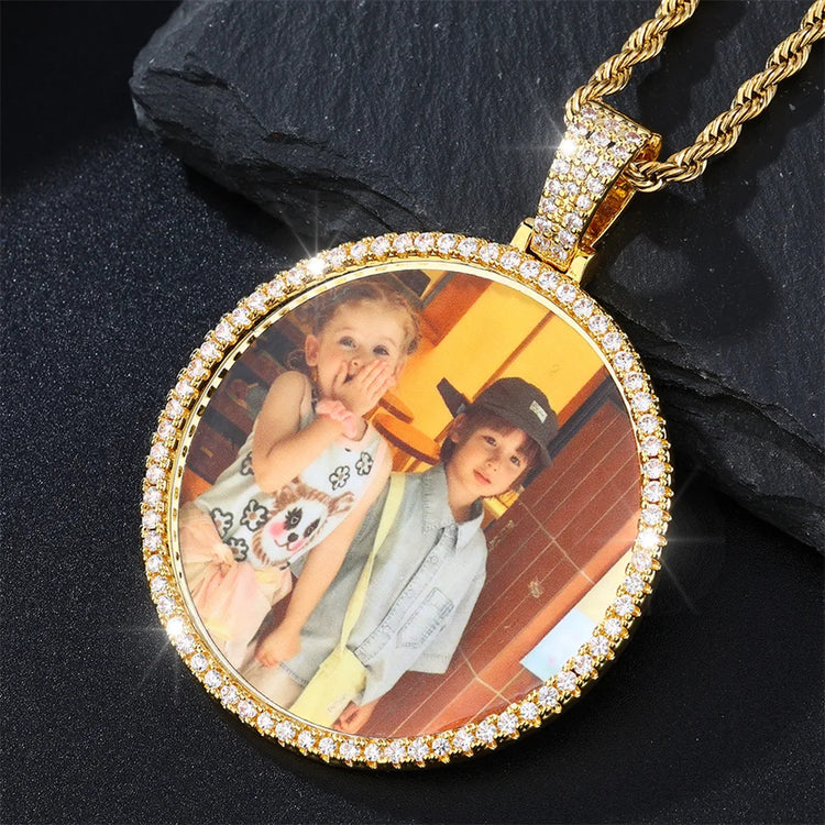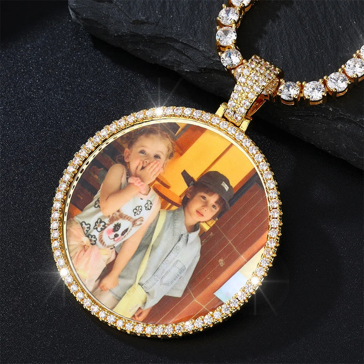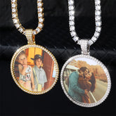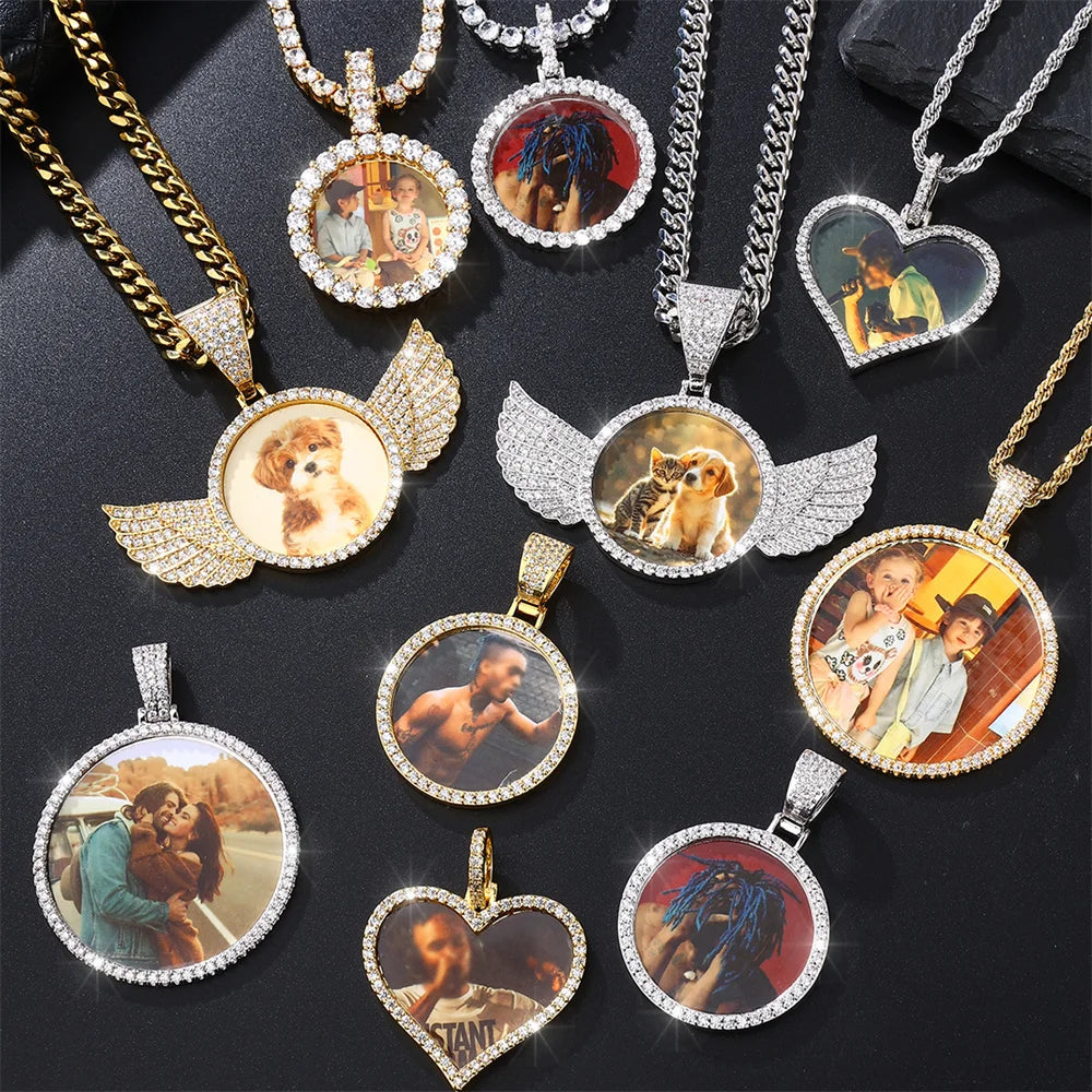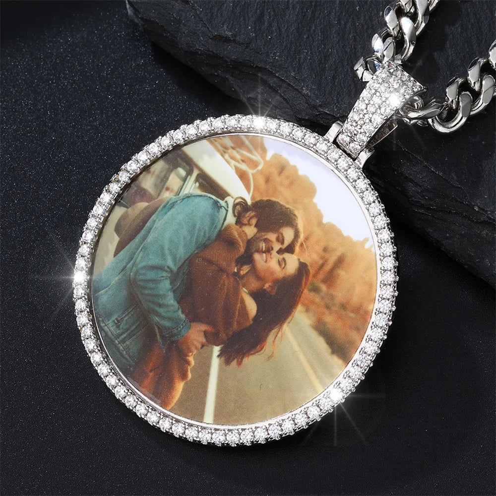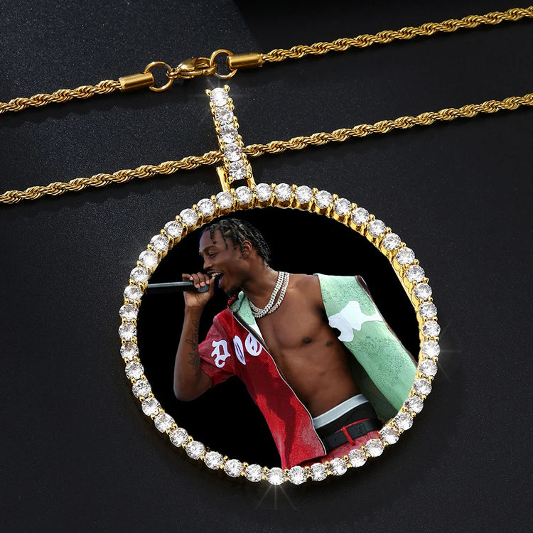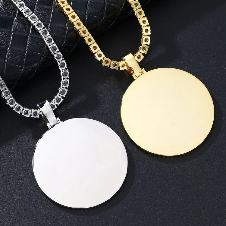 Hip Hop Custom Made Photo Iced Out Bling Cubic Zircon Round Necklace & Pendant For Men Jewelry With Tennis Chain