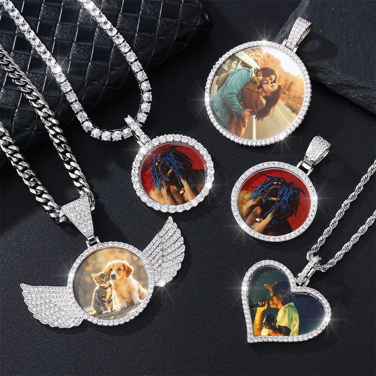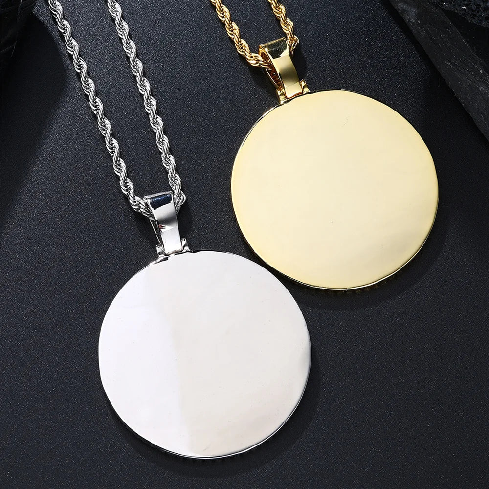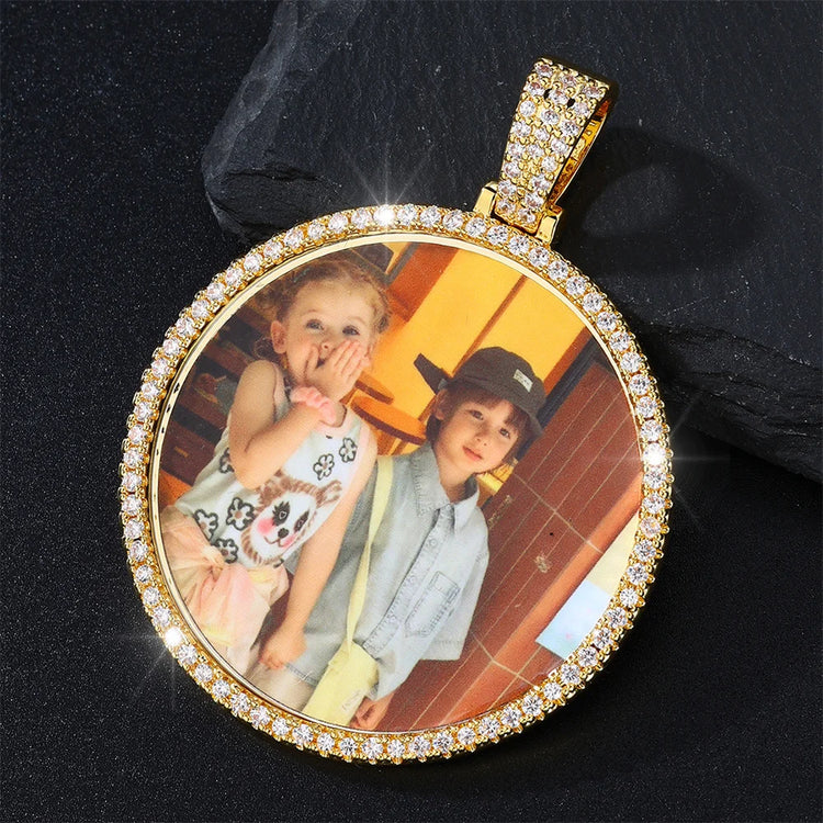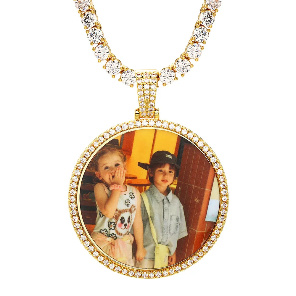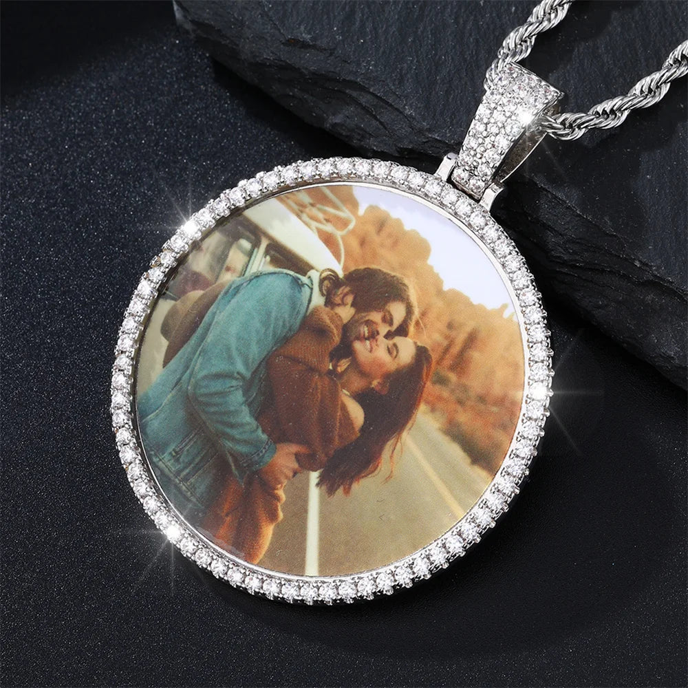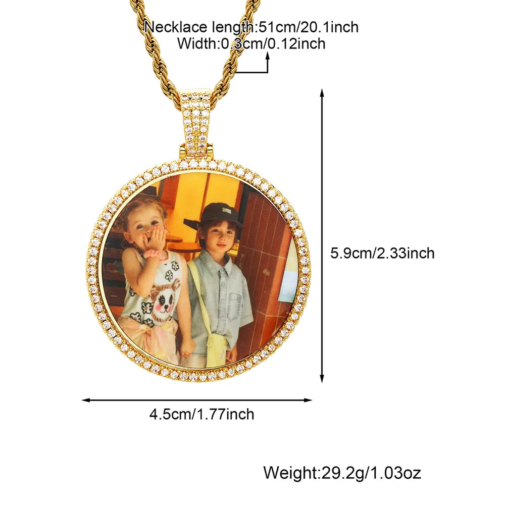 Hip Hop Custom Made Photo Iced Out Bling Cubic Zircon Round Necklace & Pendant For Men Jewelry With Tennis Chain
