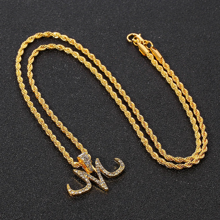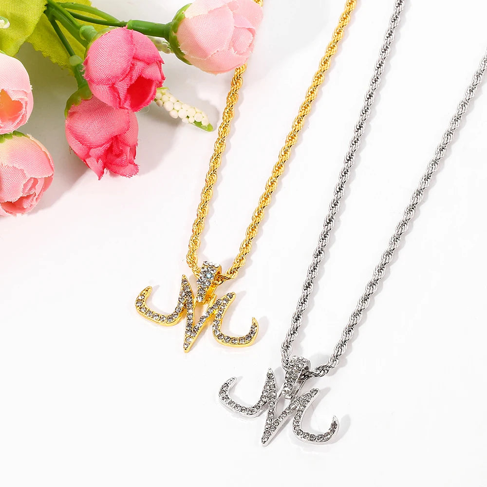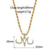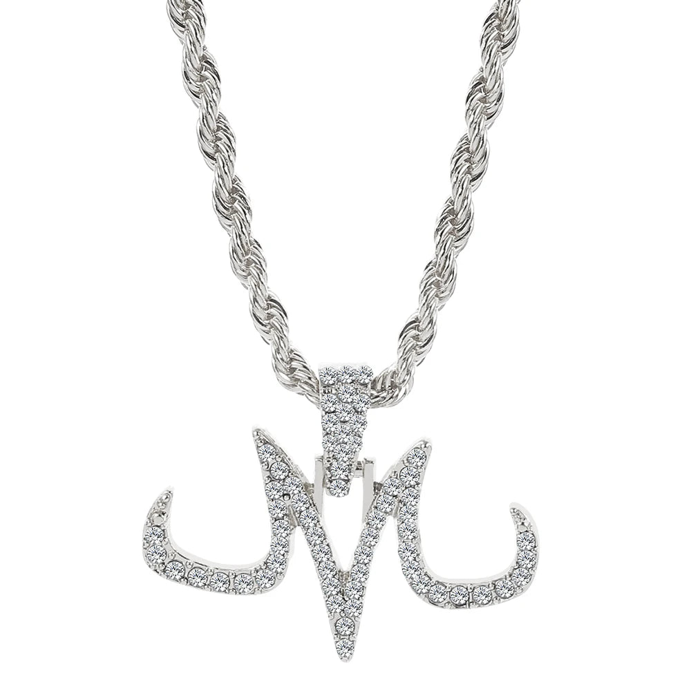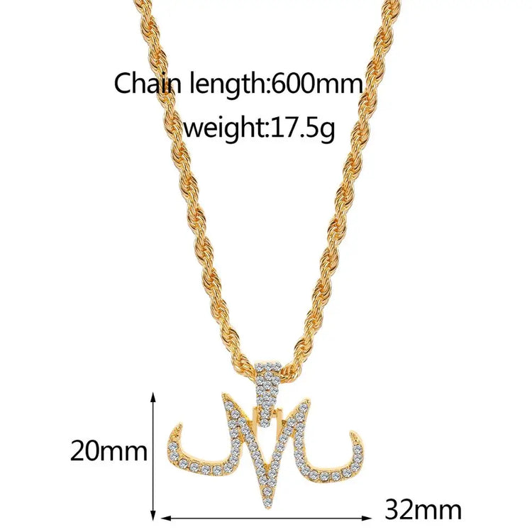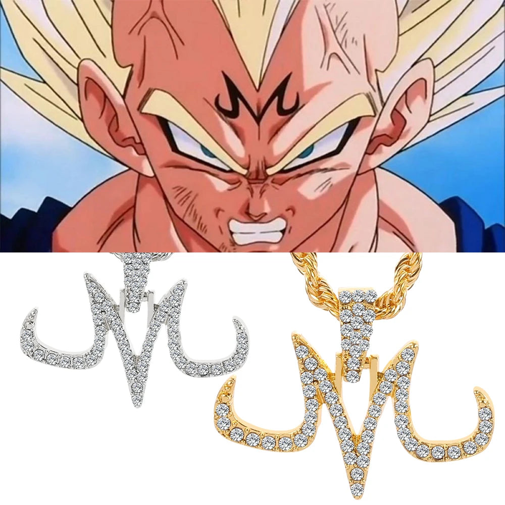 Hip Hop Iced Out Majin Pendant Necklace Chain punk Micro Pave Zircon Majin Buu Tattoos marks M Pendant Jewelry Gift