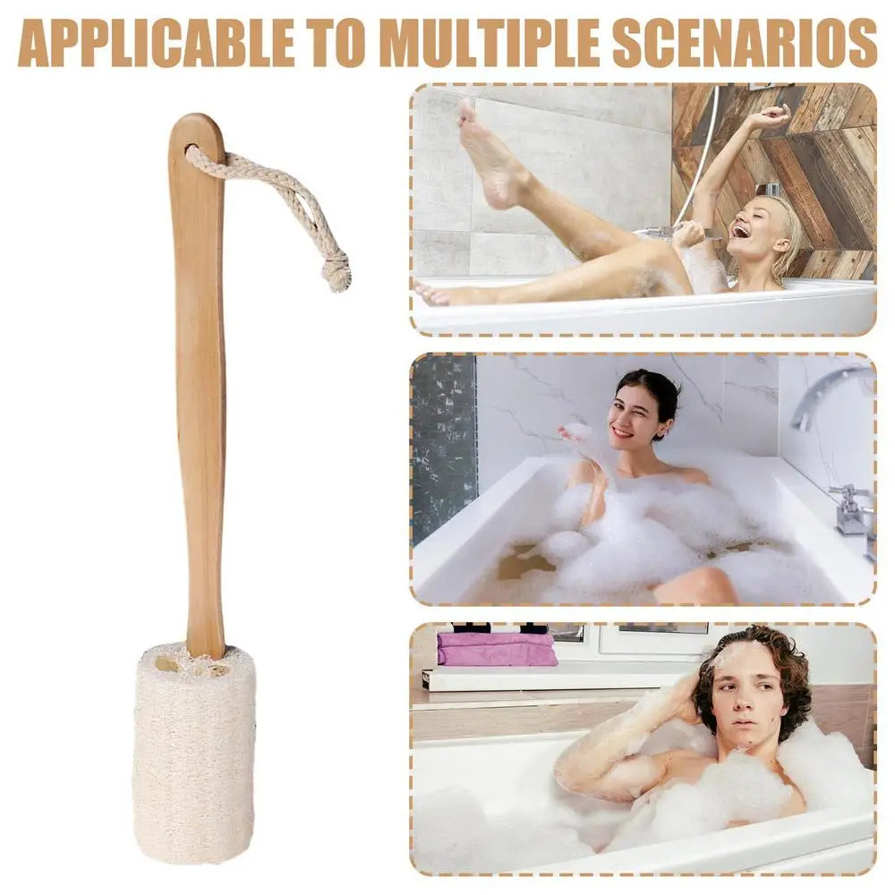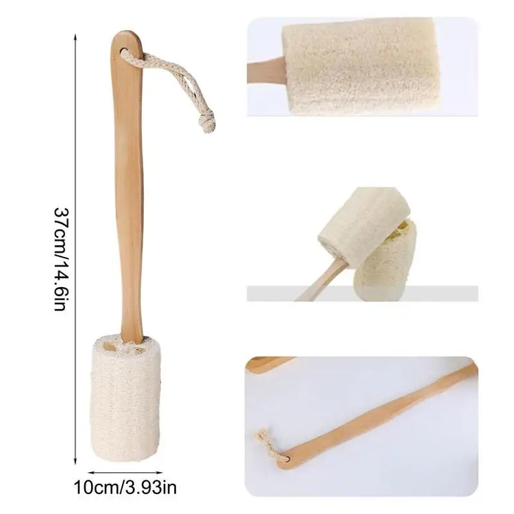 Loofah Back Scrubber With Handles Body Brush Shower Back Brush Natural Exfoliator Loofah With Long Wooden Handle For Elderly
