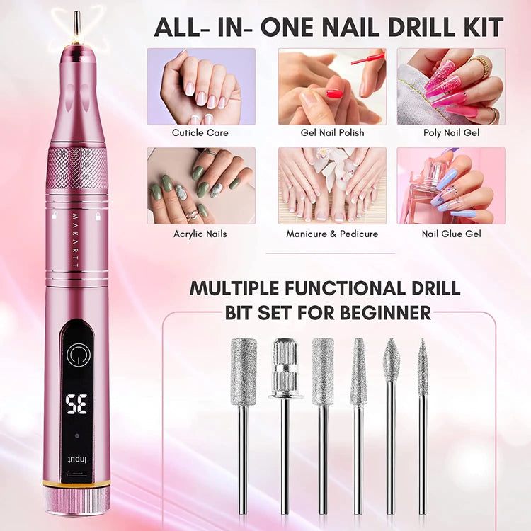 Makartt Cordless Nail Drill 35000RPM Rechargeable Electric Nail File