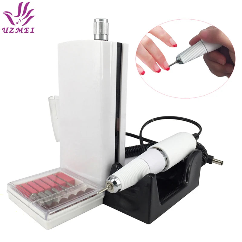 Professional electric Nail Drill Machine with 2000mAH built-in battery which is great for all types of nail work from sculpting, buffing, to polishing.It's perfect when you bring it to travelling !