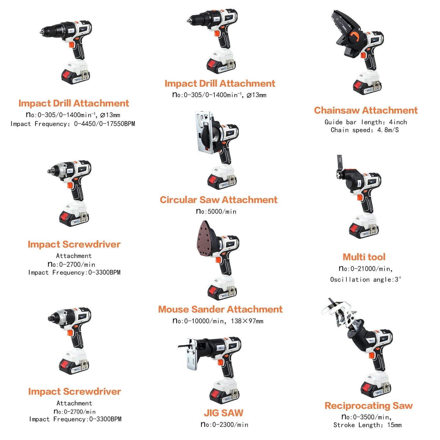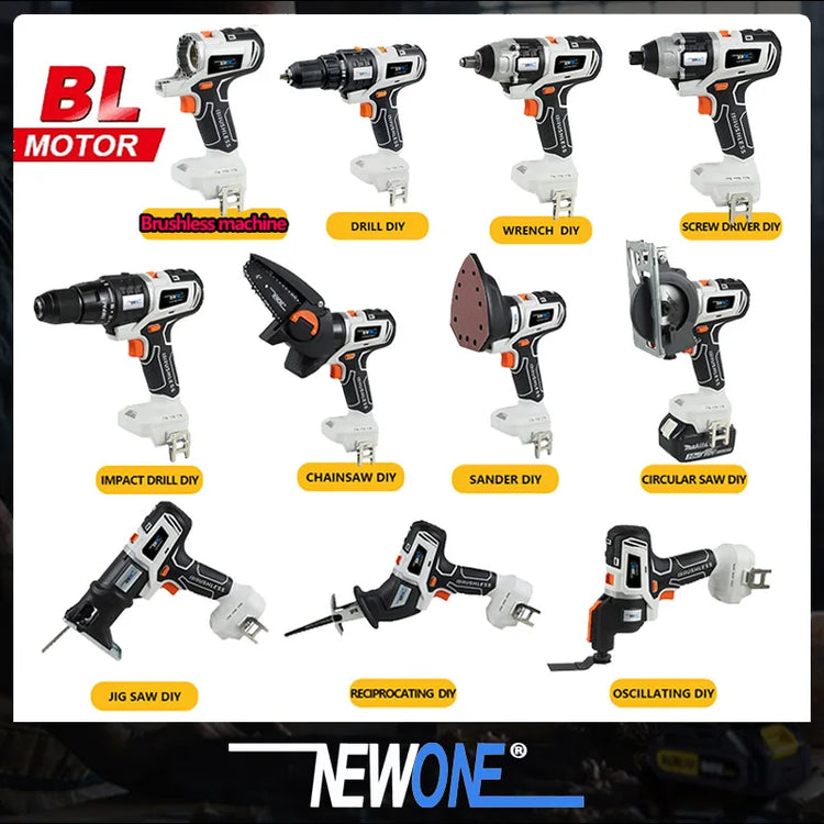 NEWONE 18V/20V MAX Brushless Lithium-Ion Cordless 10-Tool Combo Kit Impact Driver, Impact Drill, Reciprocating Saw, Circular Saw