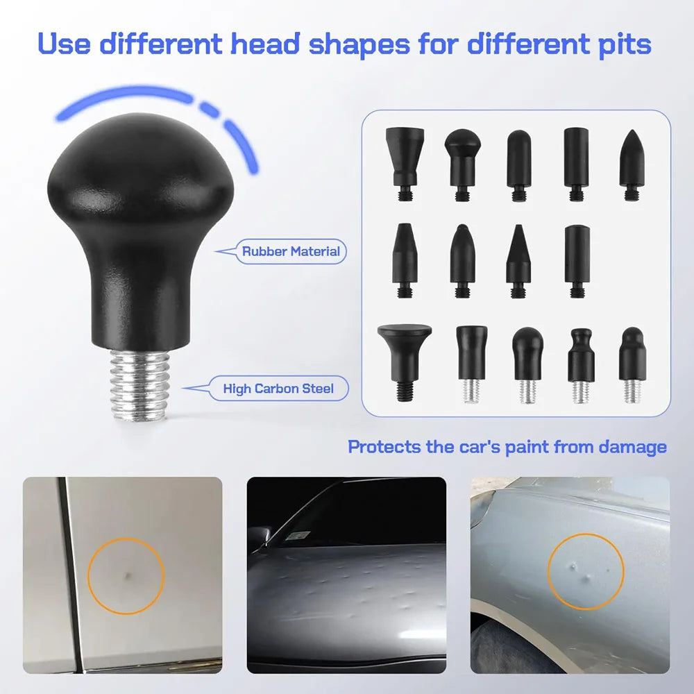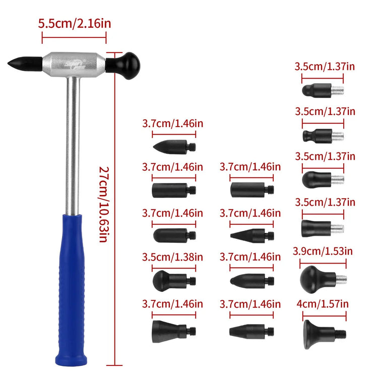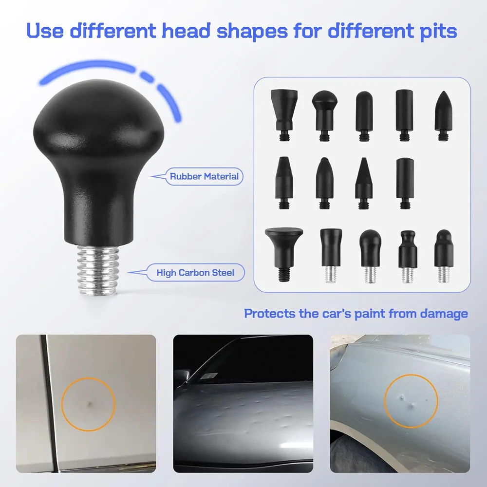 You will receive a 16-piece dent repair kit, including a rubber hammer and 15pcs different shapes head tips.