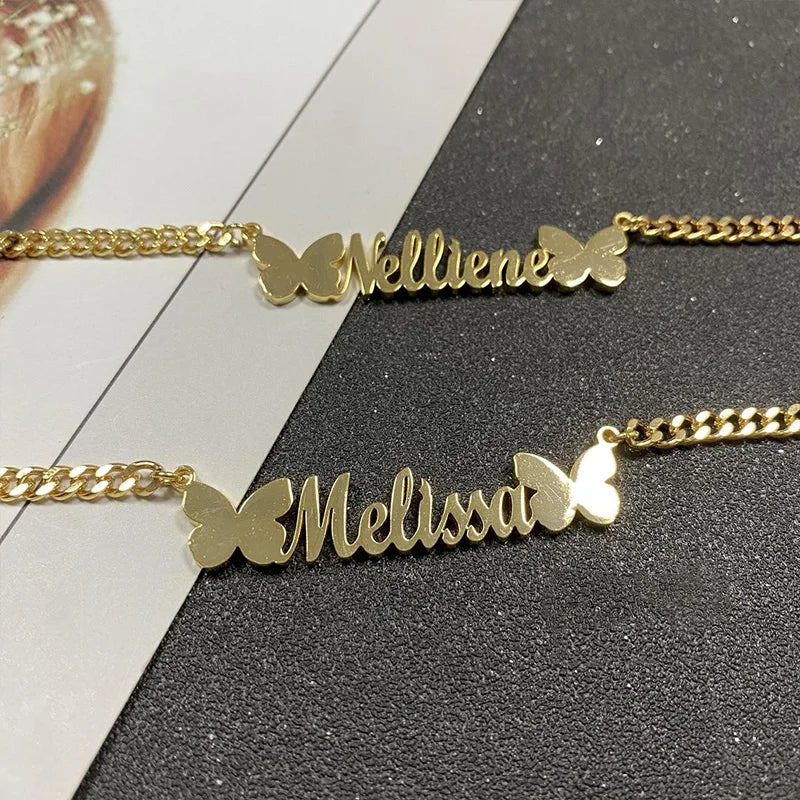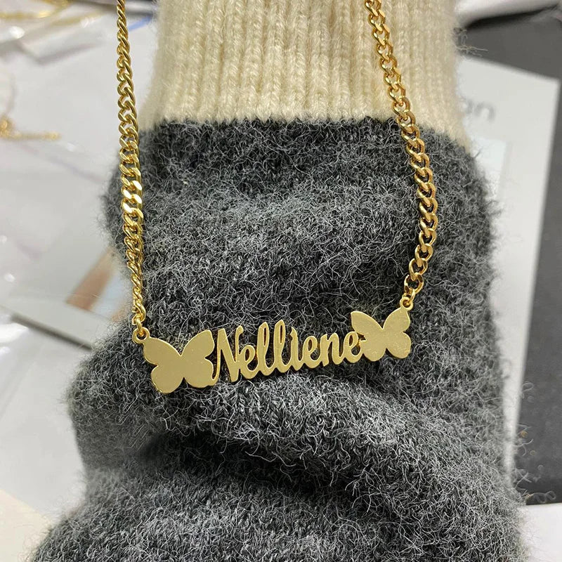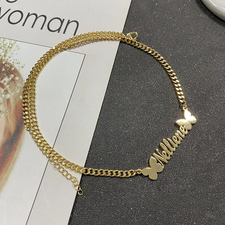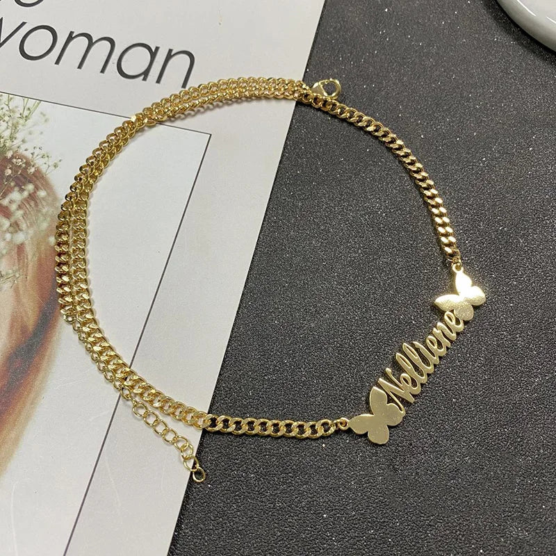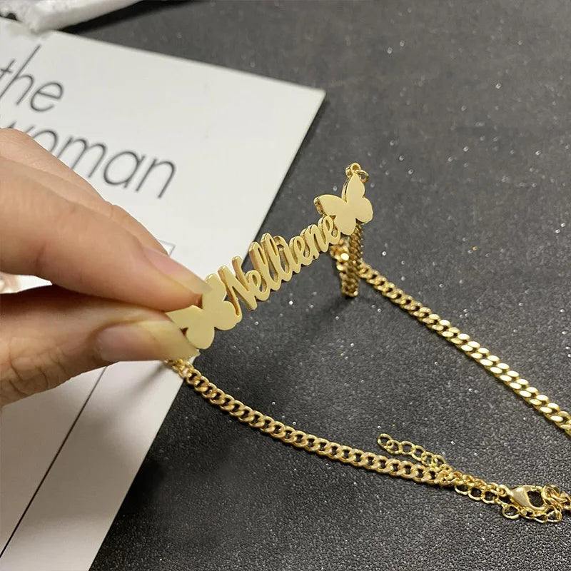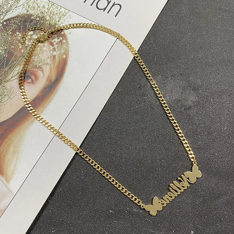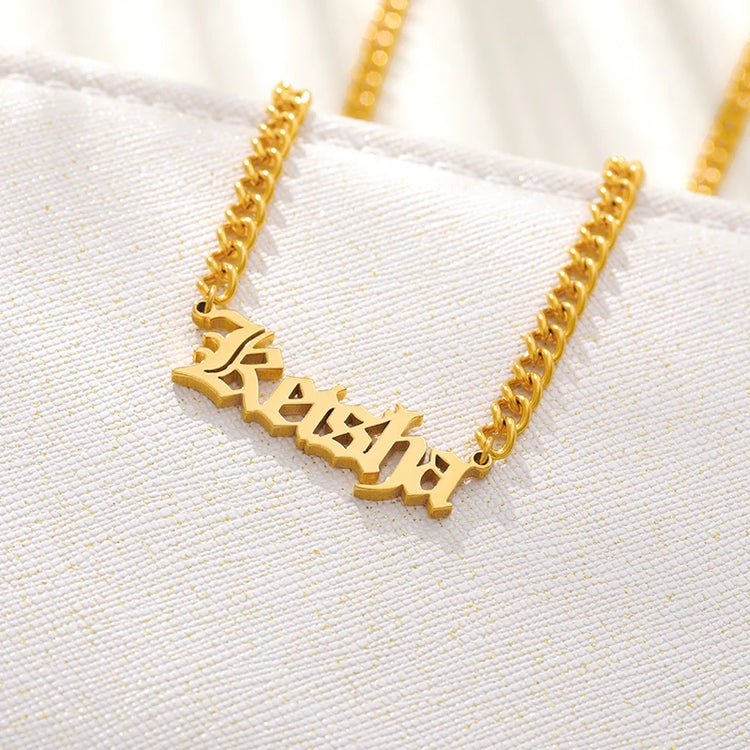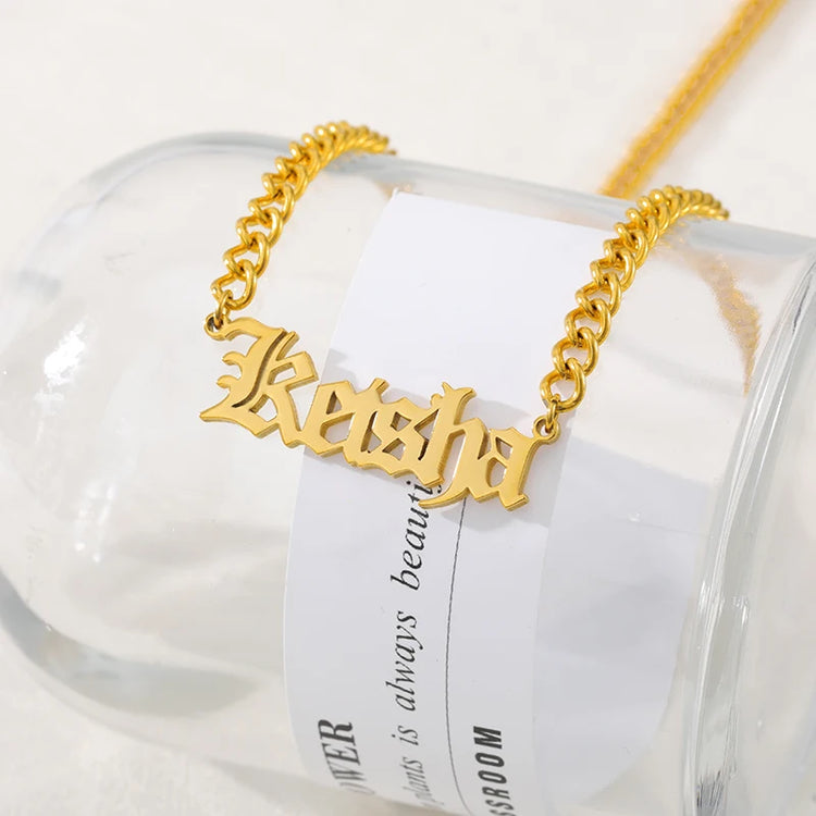 Personalized Custom Name Necklaces Pendant Gold Color Hip Hop Cuban Chain Choker Gothic Nameplate For Women Men Handmade Gifts