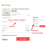 A. Clink buy now leavename and font number in message box or Clink Contact Seller leave name and font.