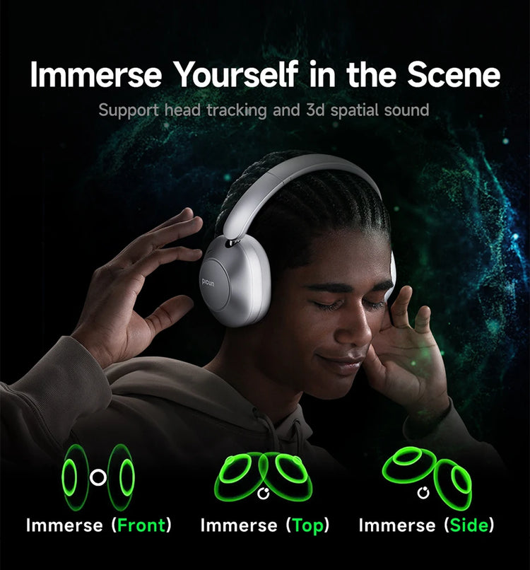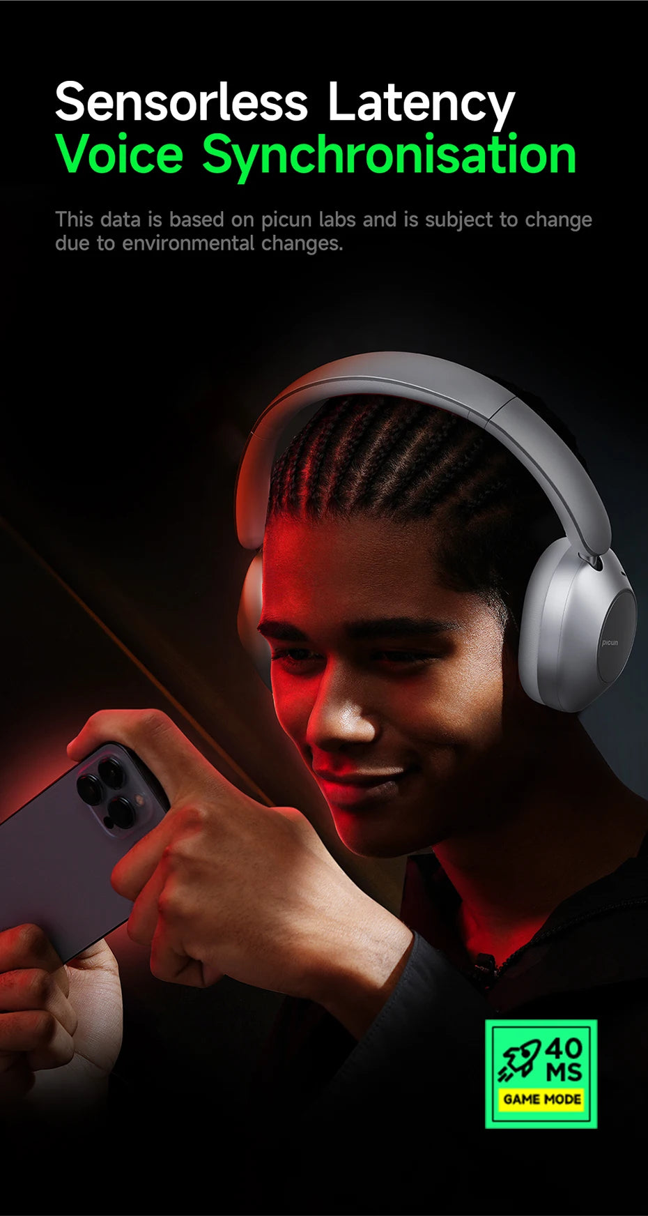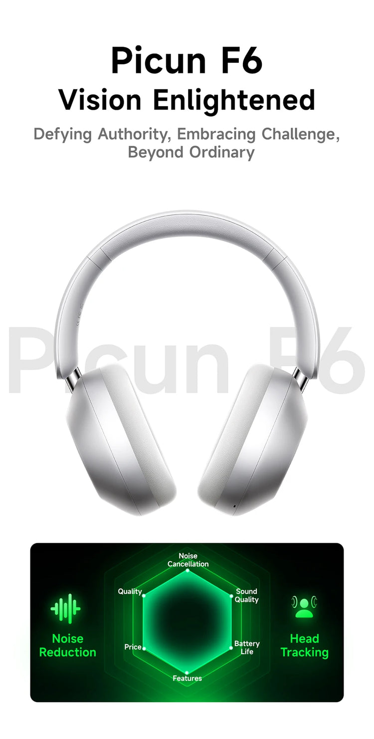 Picun F6 Active Noise Cancelling Wireless Headphones Head Tracking 3D Audio 40mm Hi-Res ANC Bluetooth Headset HIFI APP Control