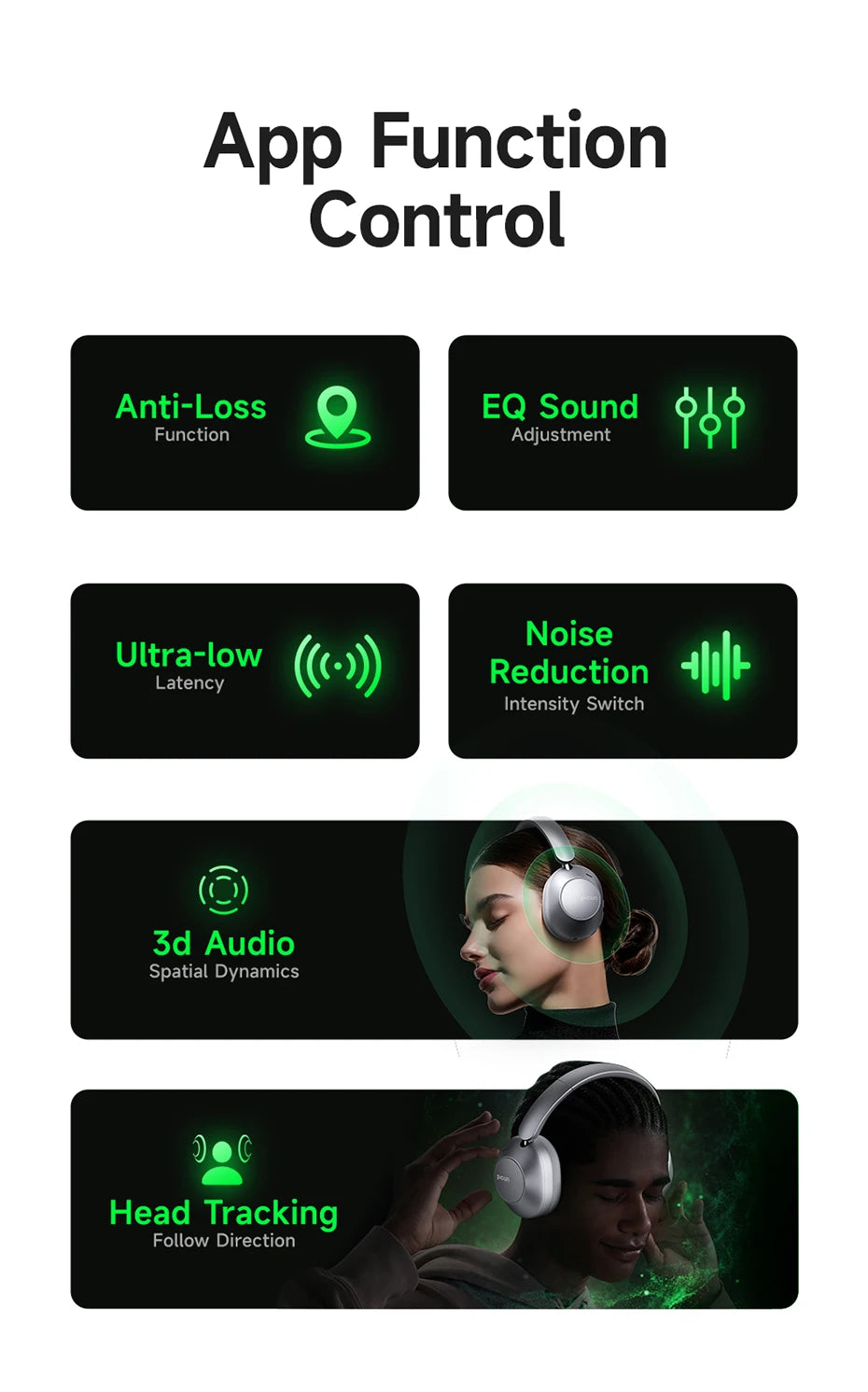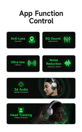 App Functions Include: Eq Sound Effects, Anti-Loss Function, Head Tracking Function, Ultra-Low Latency, Noise Reduction Mode