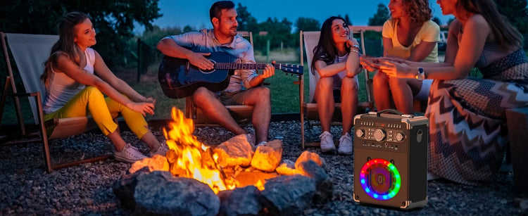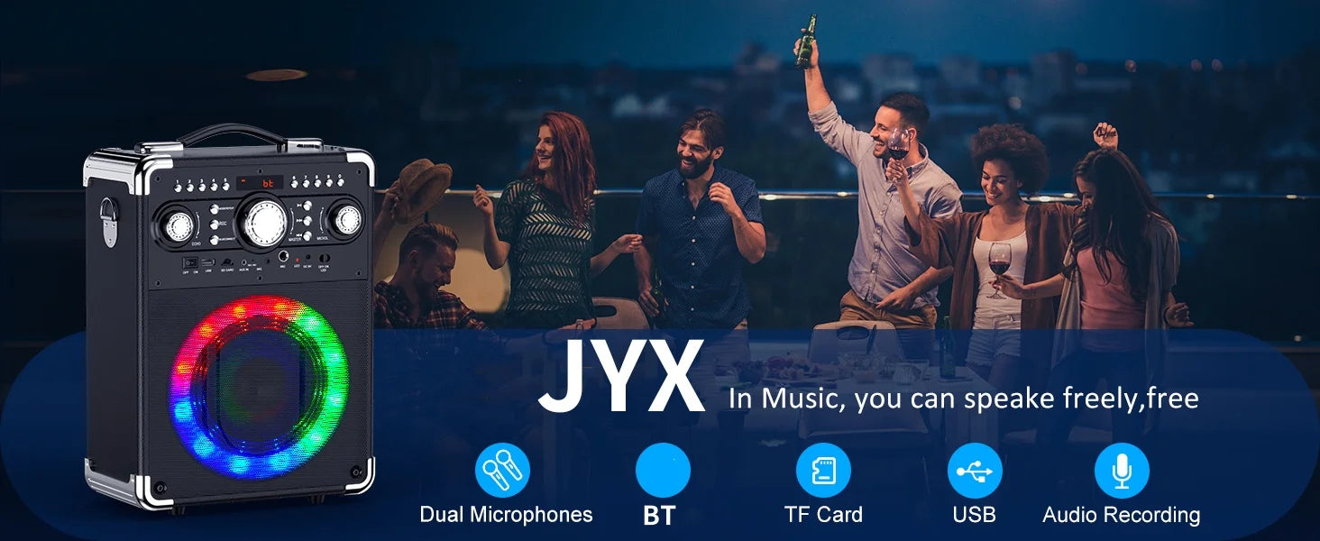 Portable Party Powerhouse:This ultra-light speaker features a reinforced leather handle for one-handed portability. Sing non-stop for 8-12 hours on a single charge,Recharge fully in 3-4 hours with USB-C fast charging.Host instant parties at parks, rooftops, or road trips
