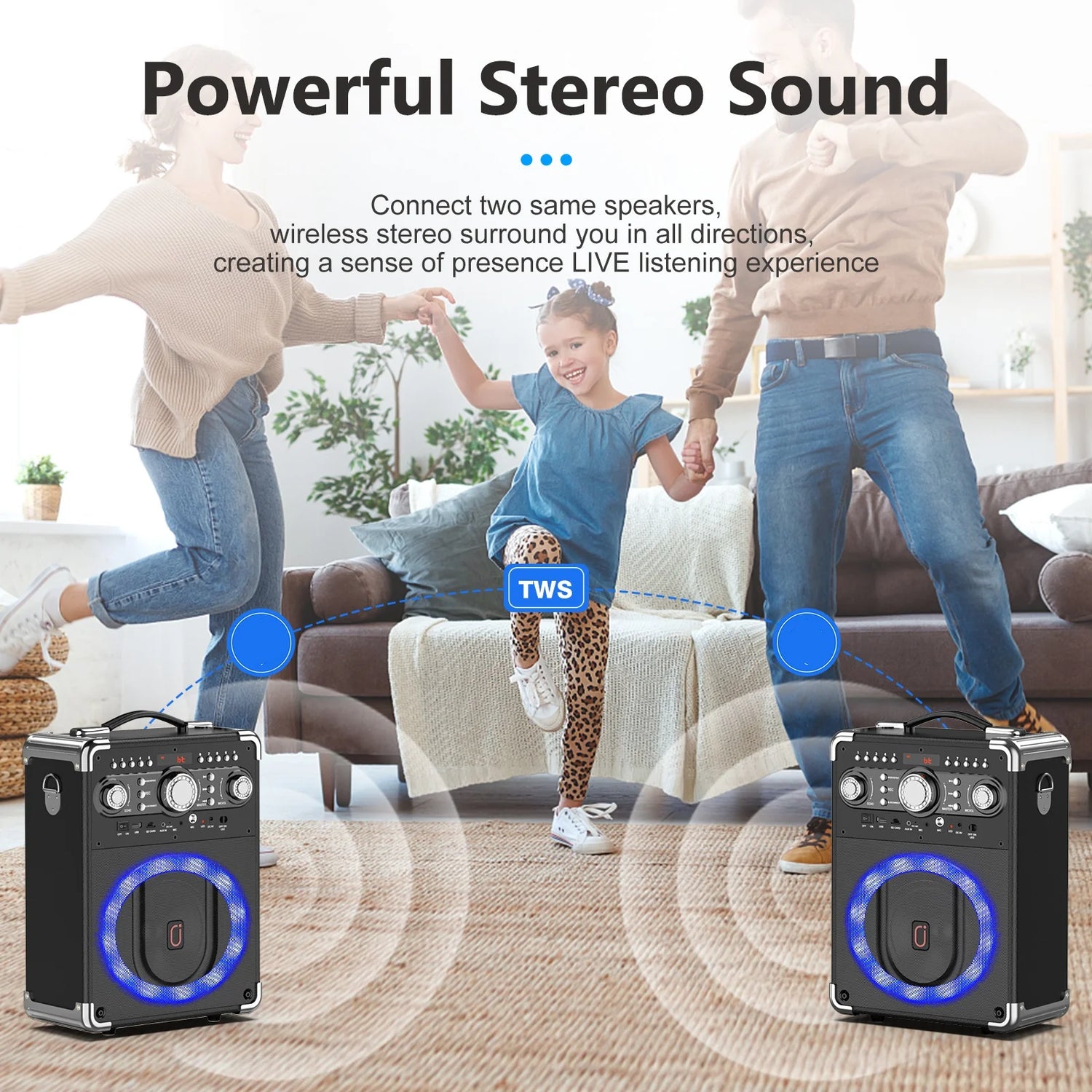 LED Light Show & TWS Mode Pairing: Transform any space into a vibrant concert hall with the built-in LED light show! The dynamic lights pulse and dance to the music, creating an immersive and unforgettable karaoke experience. Pair 2 speakers via TWS for 360° stereo immersion