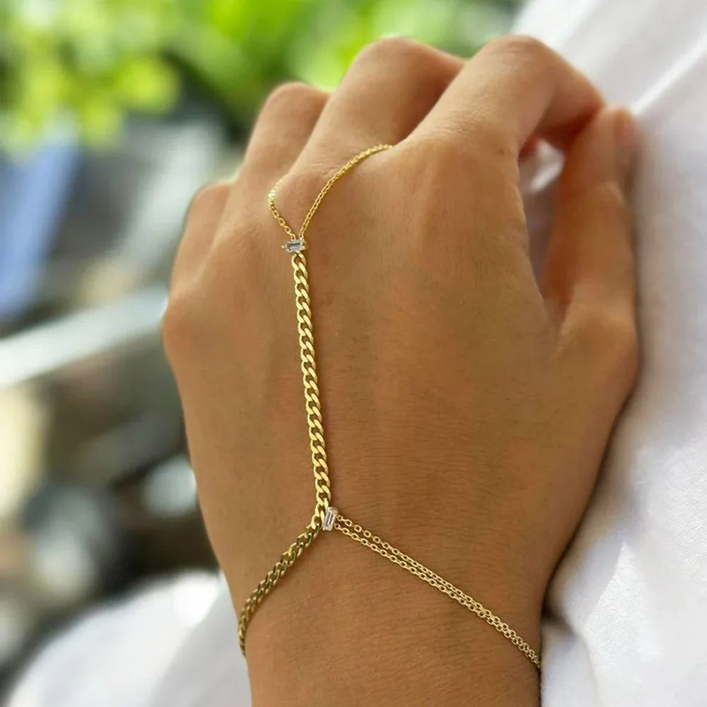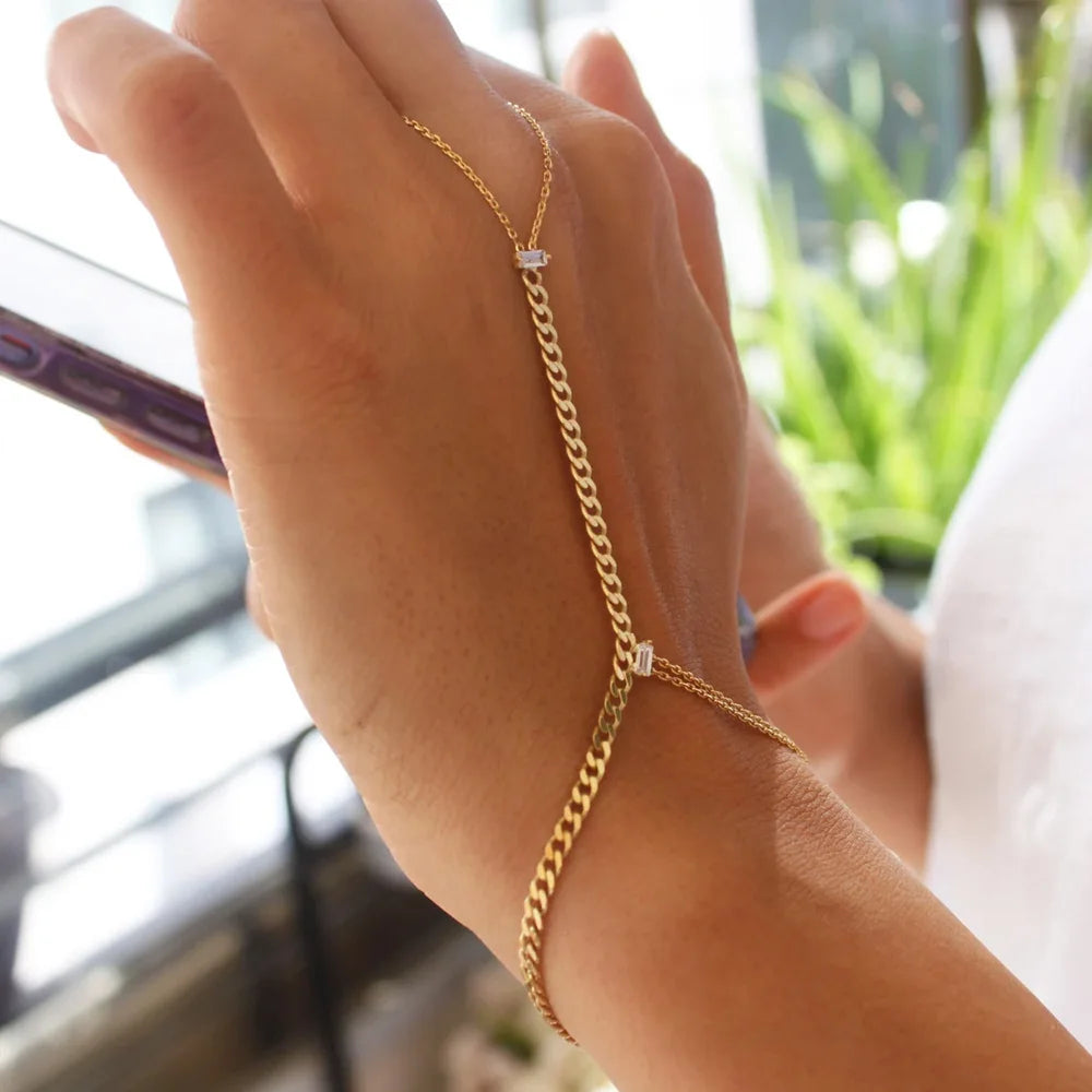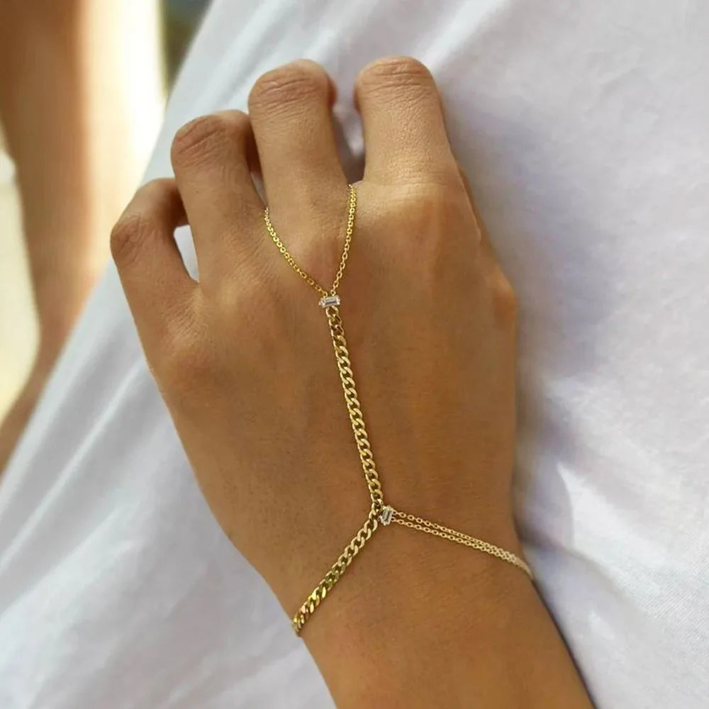 Stonefans Minimalist Cuban Chain Slave Bracelet Hand Jewelry for Women Boho Metal Wristband Chain Finger Bracelet Handmade