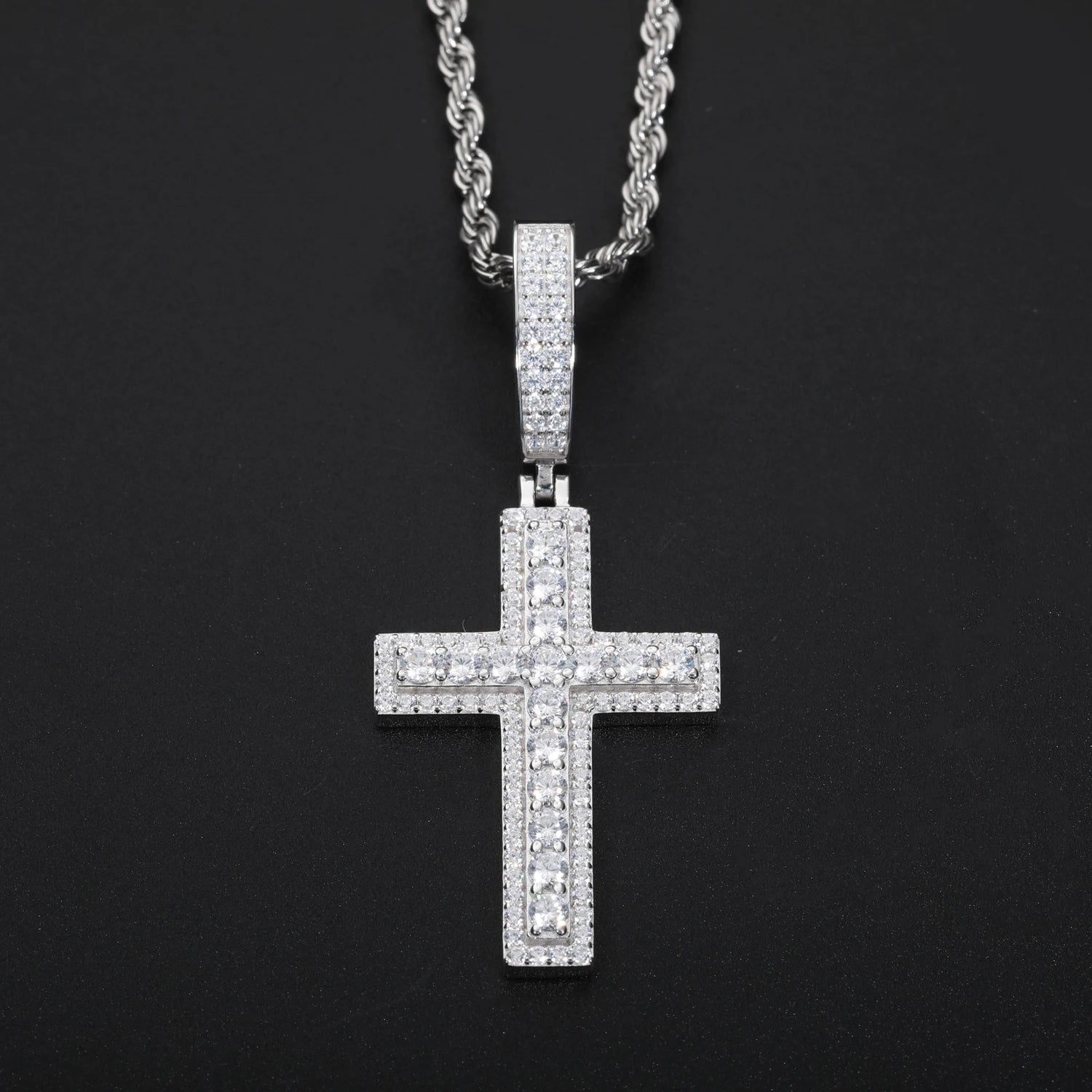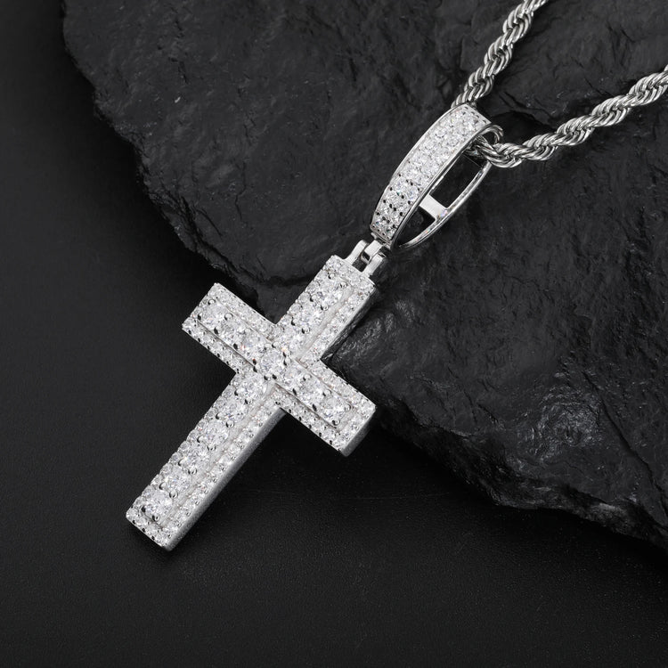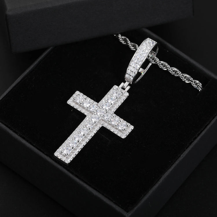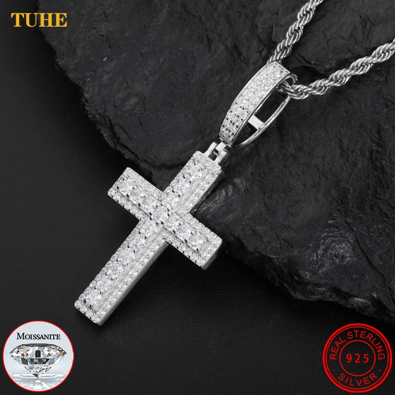 Unisex Iced Out Moissanite Hip Hop Cross Pendant Necklace 925 Sterling Silver Color For Women Charm Fine Jewelry
