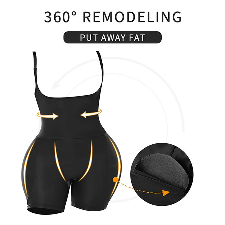 Women Upgraded Butt Lifing Shapewear Hourglass Body Shaper Bodysuit with Side Hip Pads Booty Enhancer Tummy Control Corset Fajas