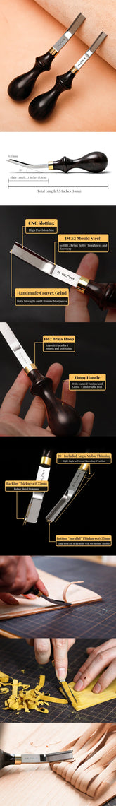 WUTA Wide Edger Skiver Edge Beveler DC53 Steel Leather Skiving Thinning Trimming Leather Tool Ebony Handle Convex Grind